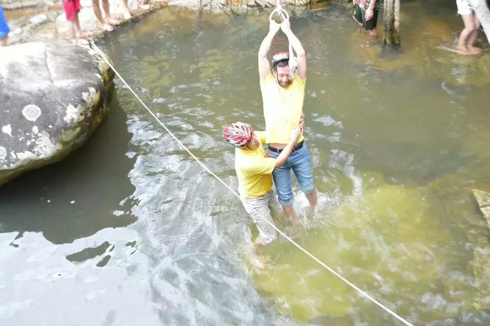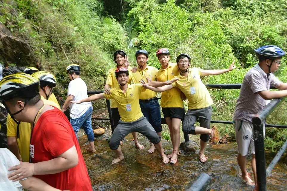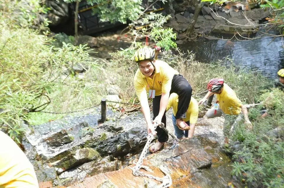 踏瀑戲水”拓展活動設在呀諾達雨林縱深1.2公里、落差200米的夢幻谷中,急流、怪石、瀑布、巨樹等構成了一個令人熱血沸騰、幾欲征服的神秘地帶。穿上草鞋,戴著頭盔您就可以出發了。溯溪而上,穿越急流險灘、深潭飛瀑,在與水石的親密接觸中,體驗飛瀑戲水的刺激和樂趣,沿途還可欣賞夢幻谷美景。為了保證活動的安全和可參與性、可玩性,景區將特別配備專業教練及防護裝備。古人云:近山者智,近水者仁。集山、水于一體的踏瀑戲水活動,能夠體味多少仁與智的深遠內涵!